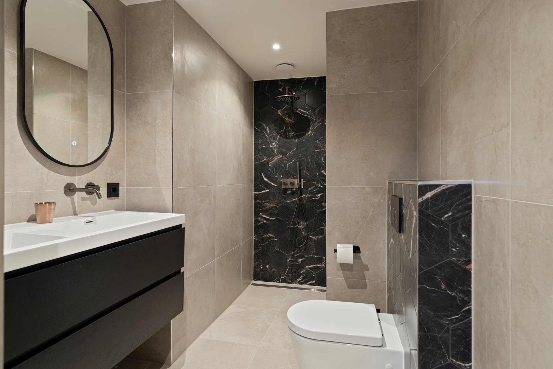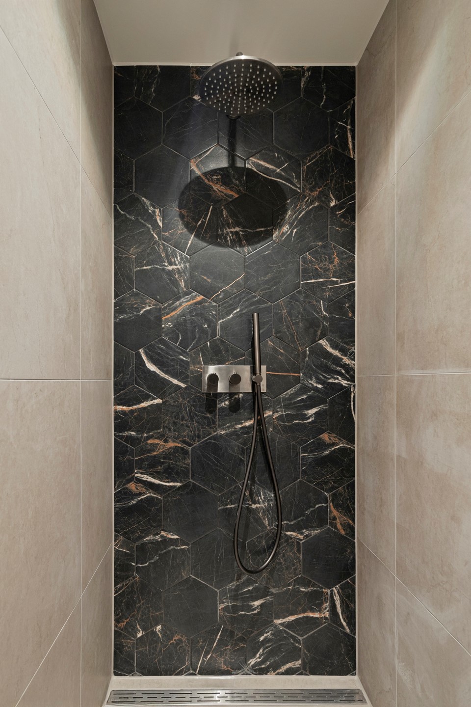 The bedroom is large, beautiful, and spacious, offering plenty of room to relax and unwind. The modern bathroom is finished to a high standard and includes a walk-in shower with a stylish double sink, adding a refined, hotel-style touch.