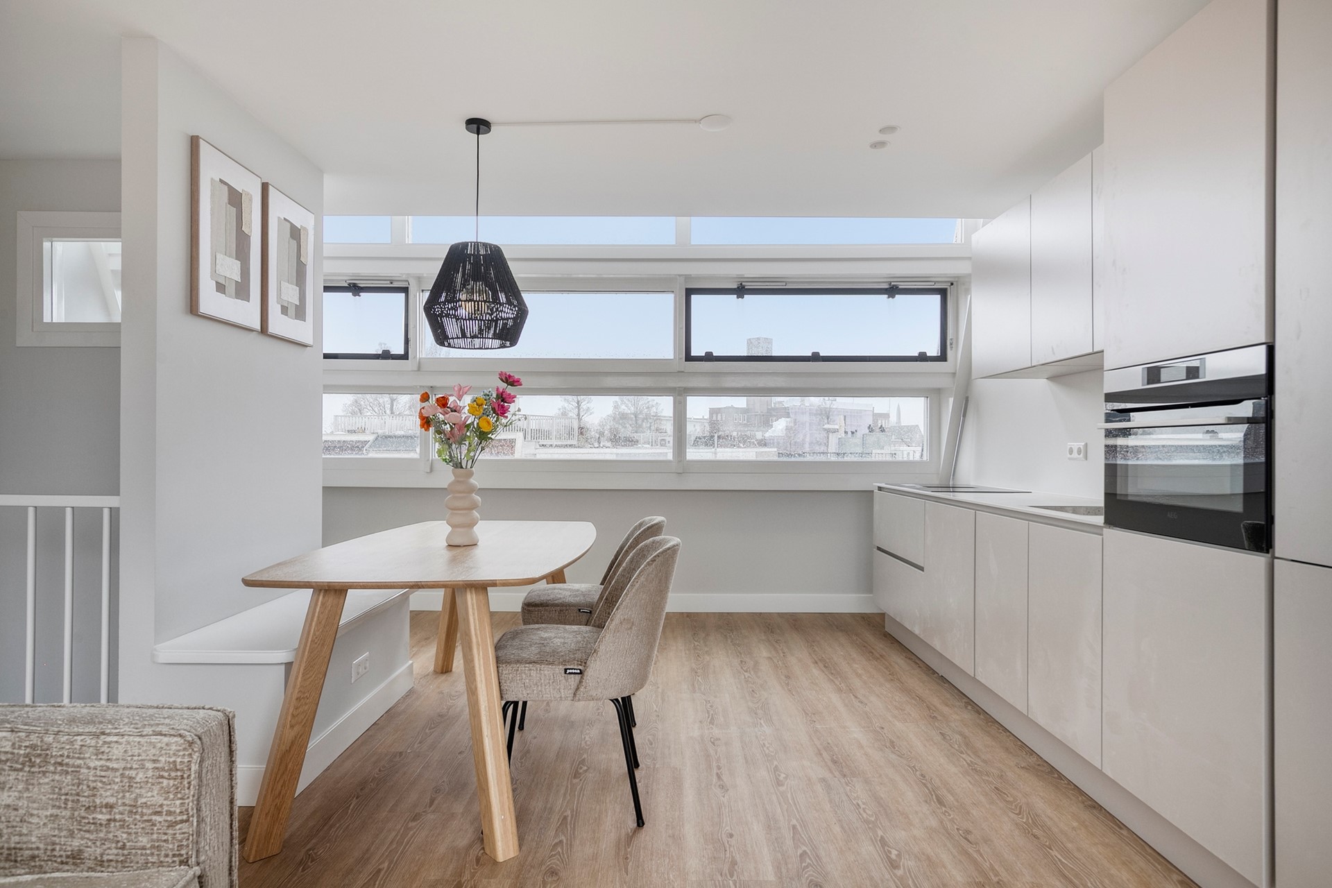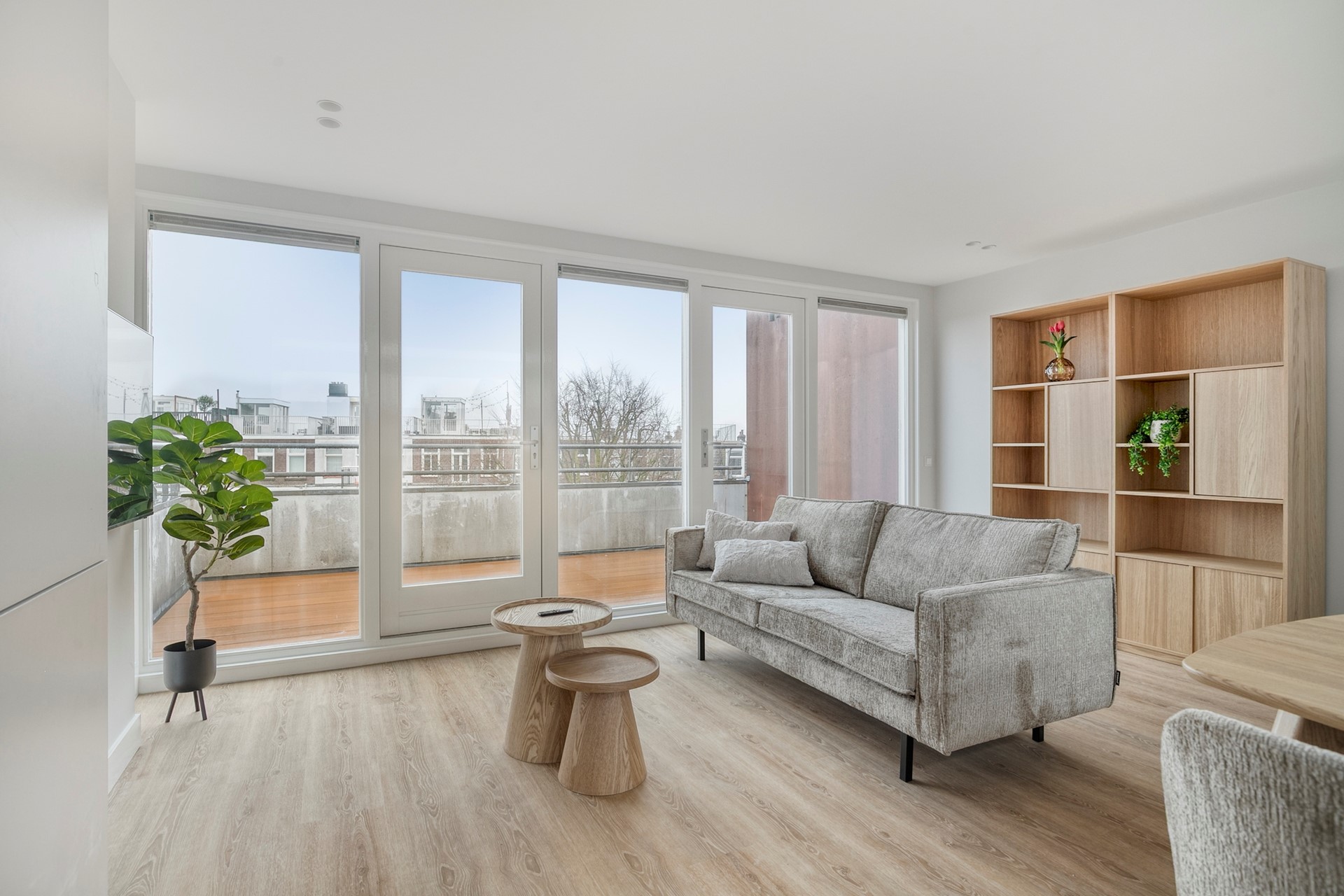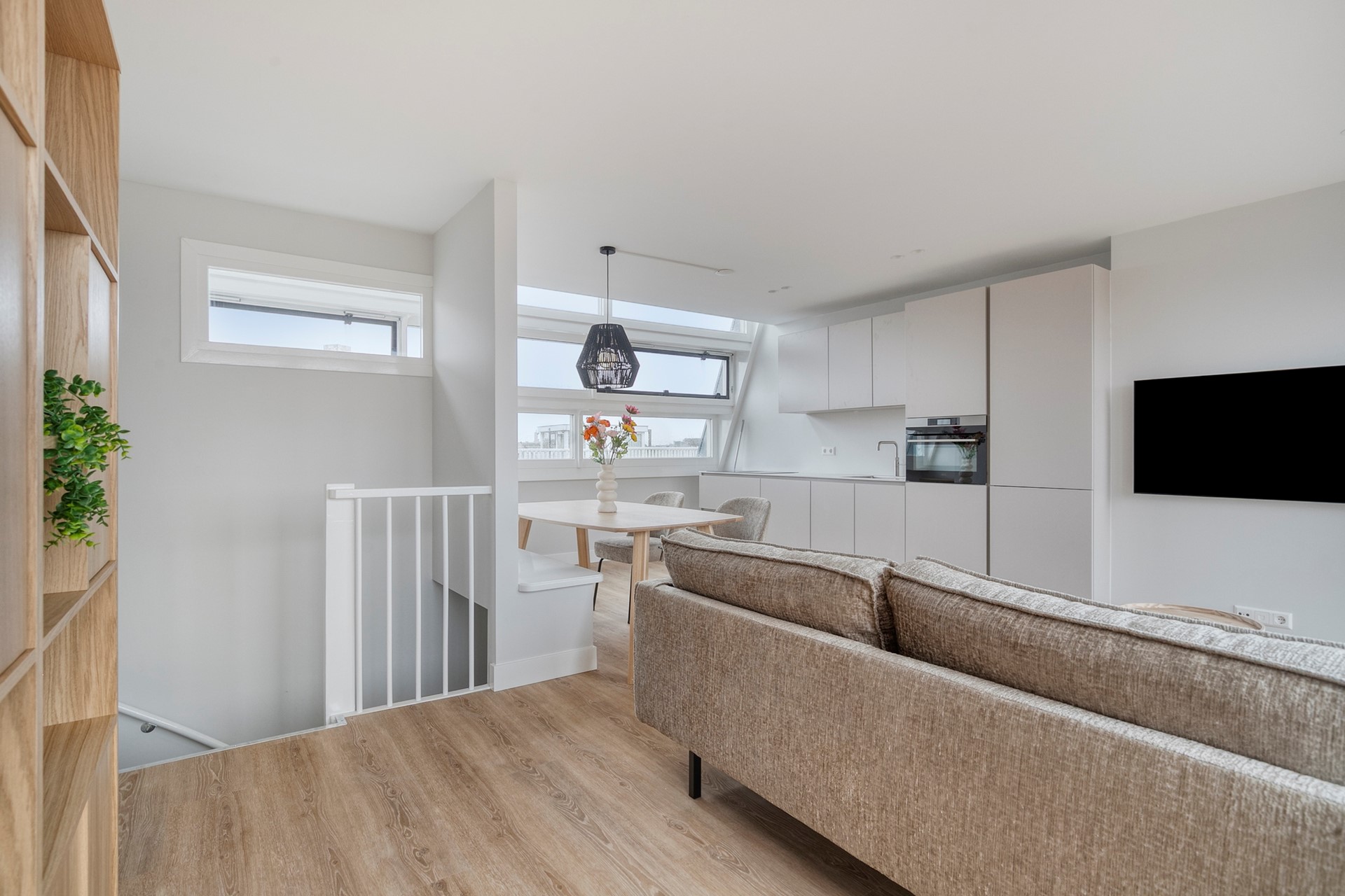 De woning wordt volledig gemeubileerd aangeboden met gloednieuw meubilair, wat het interieur een frisse, stijlvolle en moderne uitstraling geeft. Eén van de hoogtepunten van het appartement is het privé dakterras met een prachtig penthouse-achtig uitzicht over de stad, een heerlijke plek om te ontspannen of te genieten van warme zomeravonden.